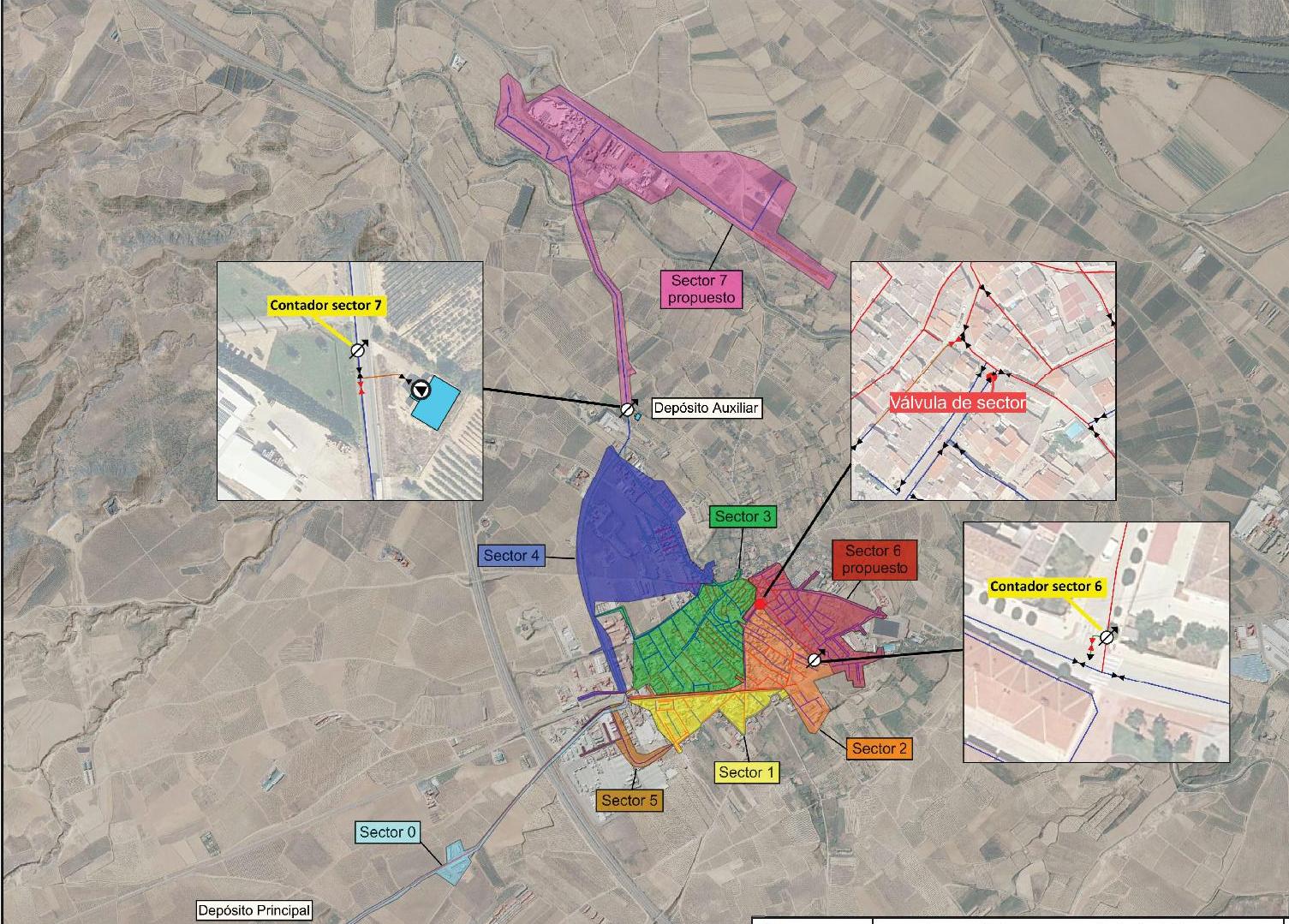 - Mejorar la red de abastecimiento realizando todas las actuaciones necesarias para culminar la sectorización de la red de abastecimiento del municipio y la implantación de un sistema de telegestión adecuado para el control del agua que se aporta a la red de distribución de la localidad. Entre estas medidas está la instalación de válvulas de corte, contadores generales y registradores de datos, la integración de estos equipos en el sistema de telegestión actual y las labores de sectorización efectiva.